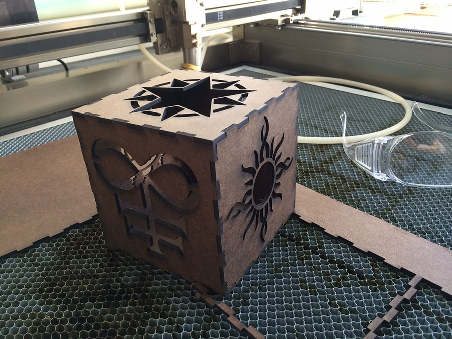 i designed a 5x5" box in inkscape and cut it out of 3.2mm masonite: