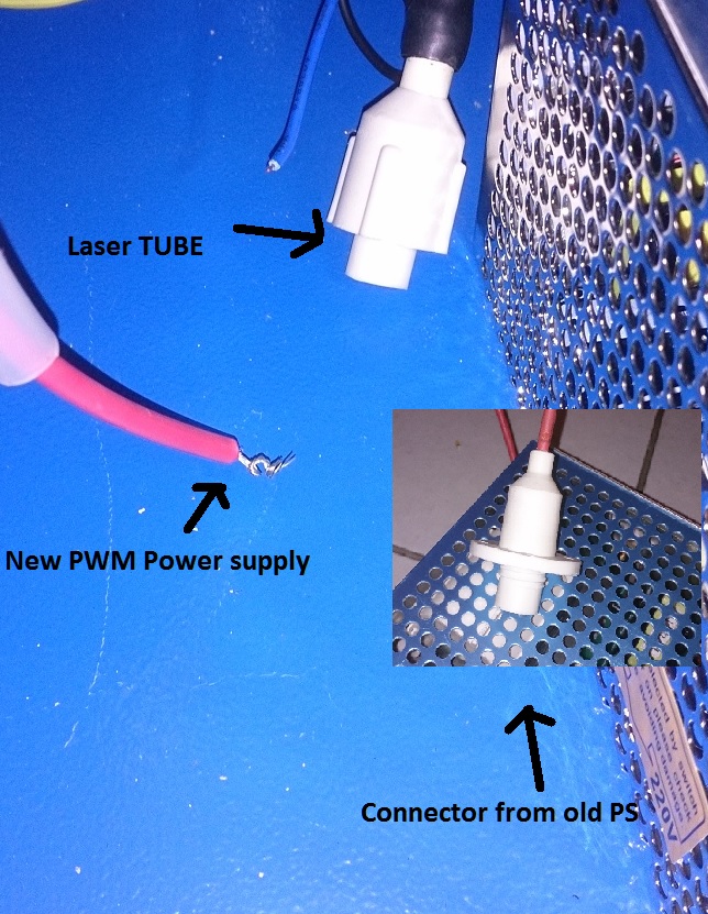 i took out the white silicone , and like this , i know exactly , how tu connect the new PS to the laser tube . ( easy when the solicone is out .)