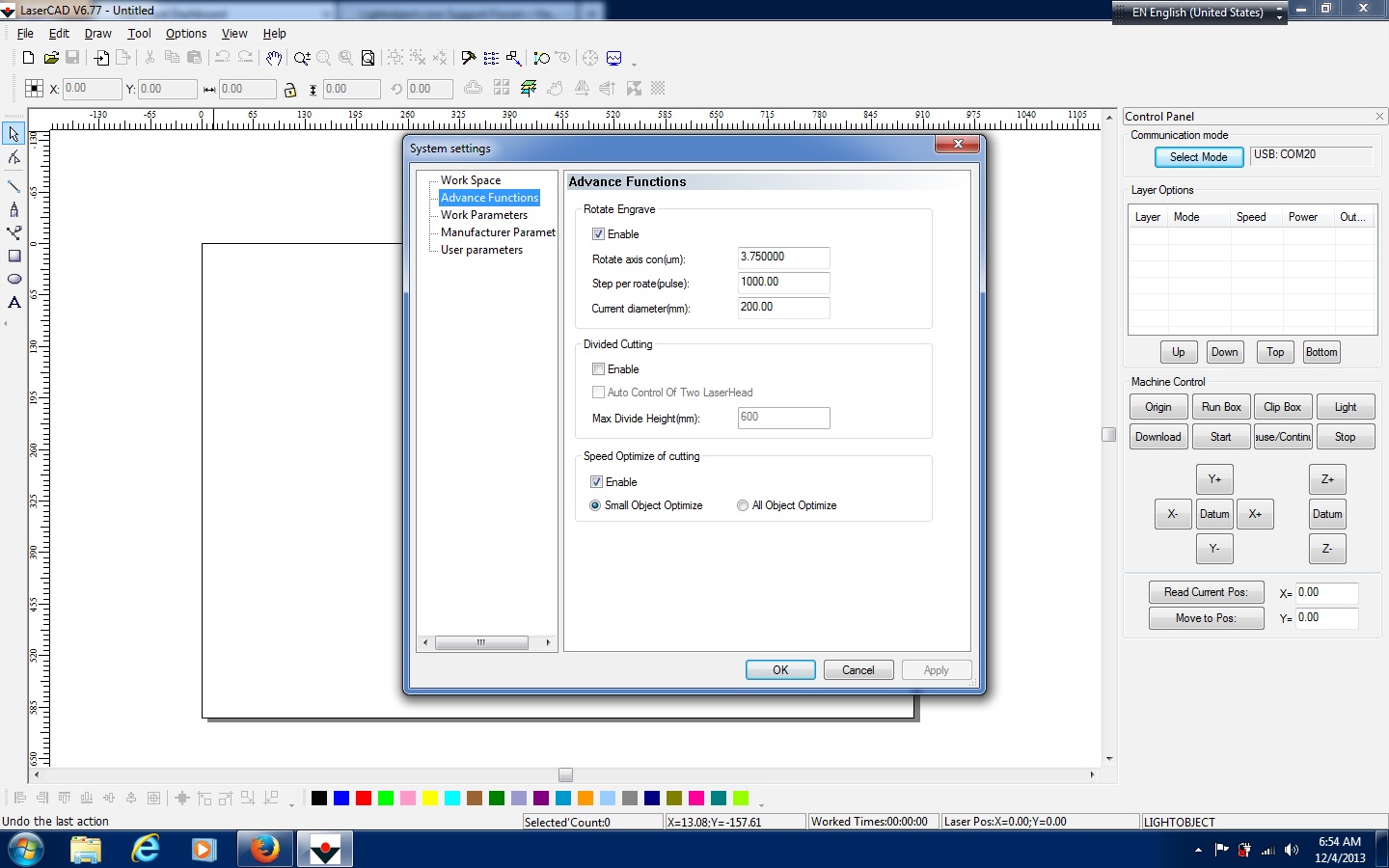 After making the config change you described and presetting Origin makes no difference. At startup or reset X and Y move rapidly some distance. Very undesirable, and a little bit dangerous.Tech_Marco wrote:I have discussed with the programmer and he insisted that he did NOT change other things beside just disable the option with that configuration file I showed you. The reason the Y may swing because you didn't have Origin set before the limit switch is disabled. You may want to do it before you disable Y and use the "Origin" key to setup the laser head location before doing that.