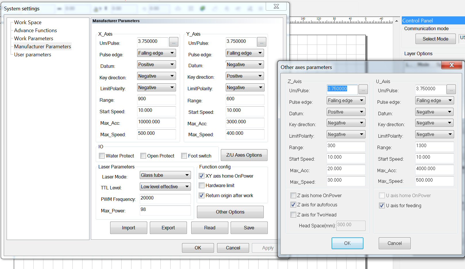 I talked to the programmer and I was wrong to say that he forgot to include the parameter setup. In fact he did but it is doing on the LCD control unit rather than using the LaserCad. He was so happy to have my leg pulled as I always teasing for not doing good job on this or that