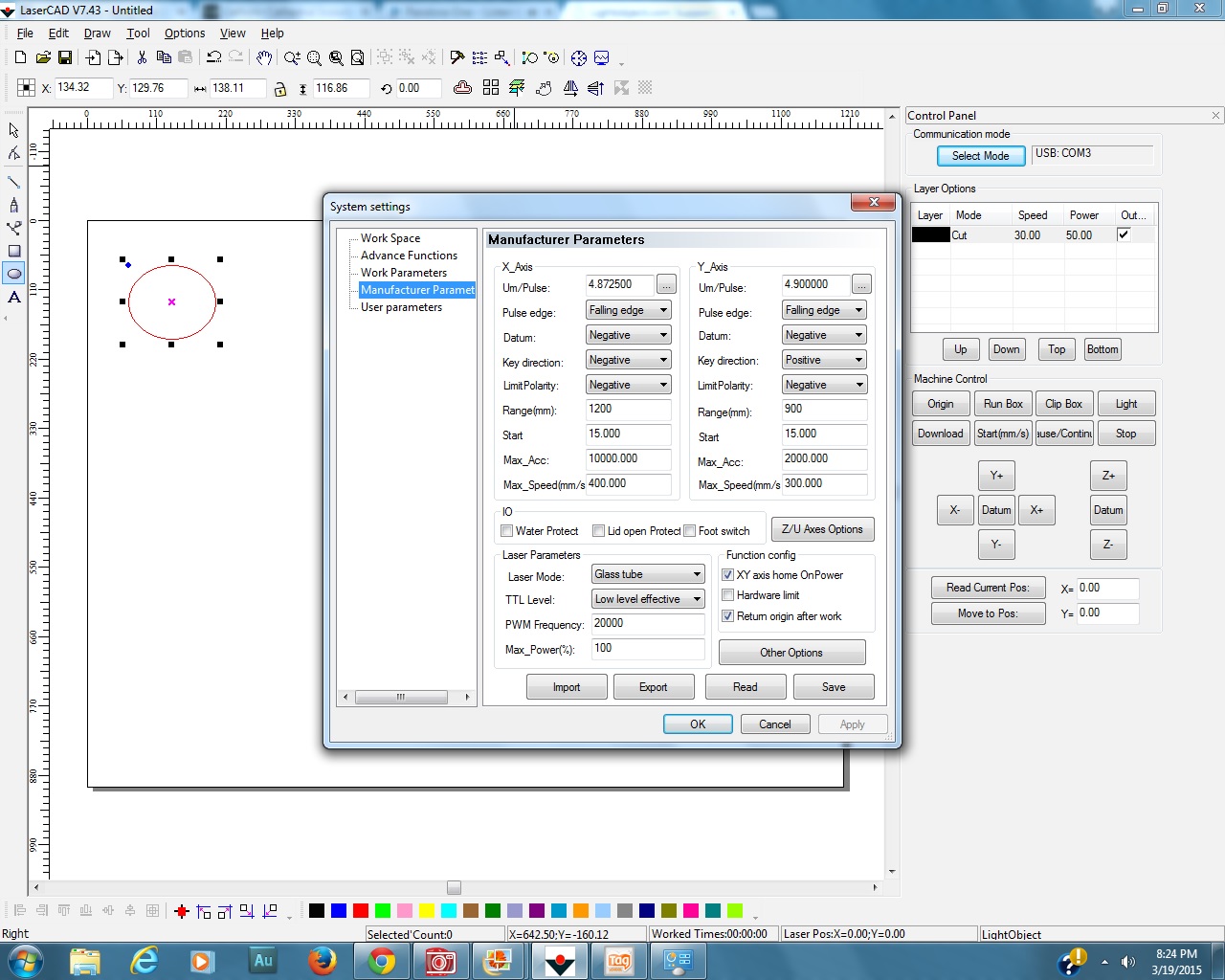 If I try to cut a circle using the same settings in the LCD, I only get 6 mA at the same power.