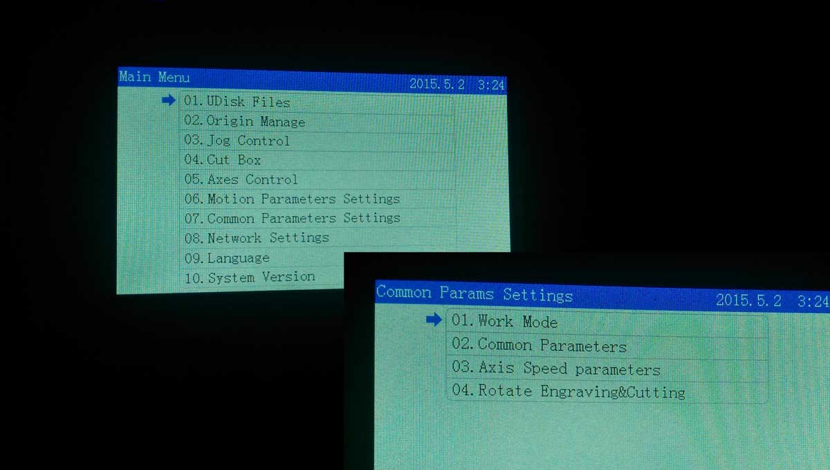 Per programmer Li, the setup is on the LCD unit but not from the LaserCad.