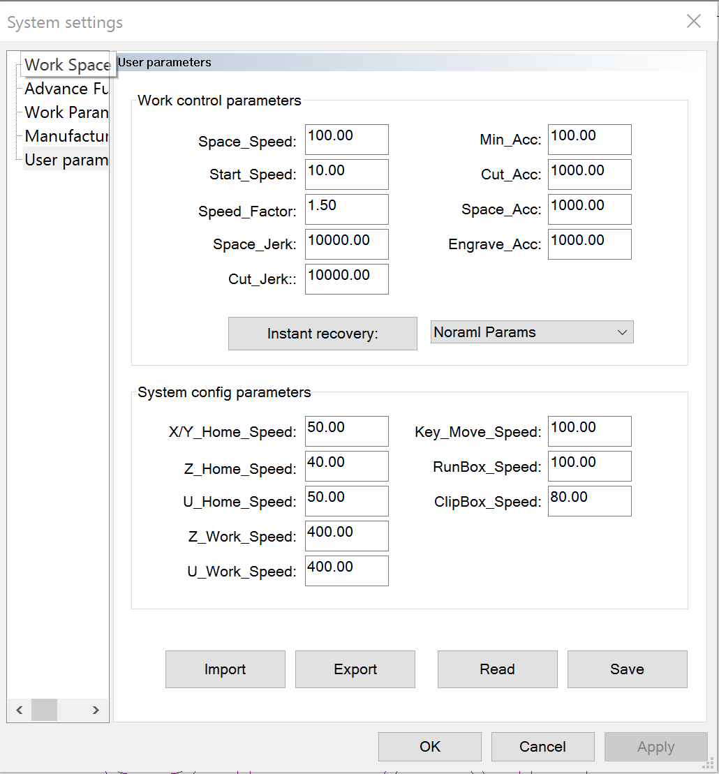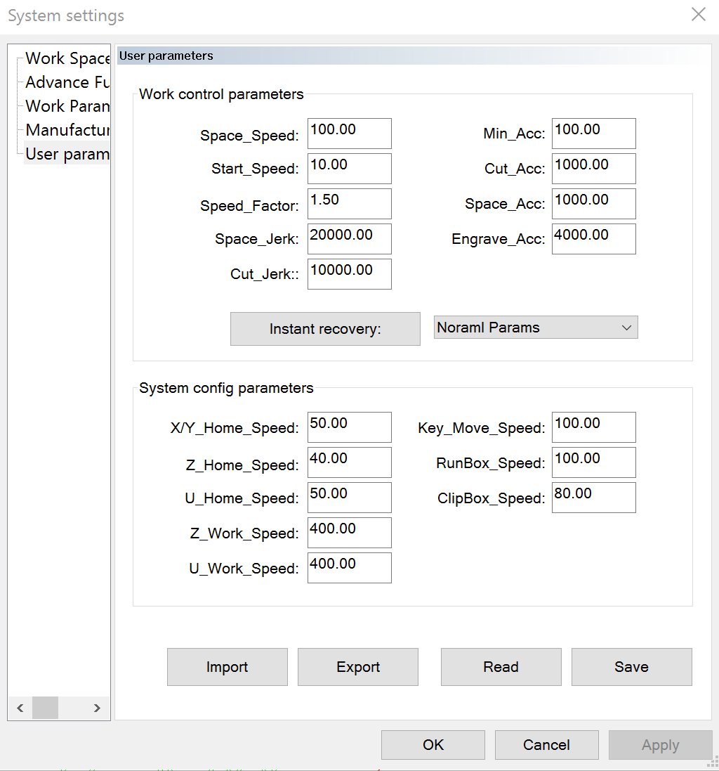 Cut jerk and space jerk need to set to 10,000 and 20,000 respectively