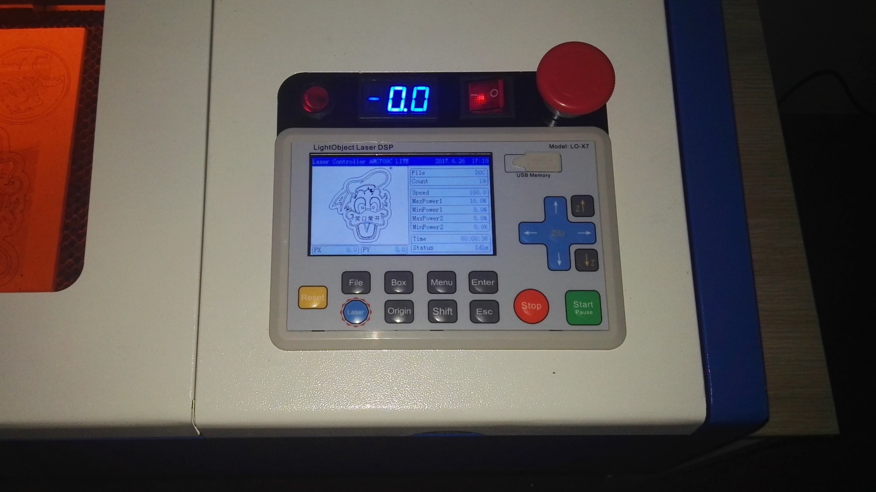 Thanks, designed the panel myself in raycam, had to play around with the mounting holes when I cut it as I hadnt calibrated the laser correctly at that point so it was cutting 6mm short. Also had to slightly modify the controller, just the 3 beveled mounting lugs. The panel consists of E-stop, amp meter, on/off switch and laser arm buttons and the dsp.