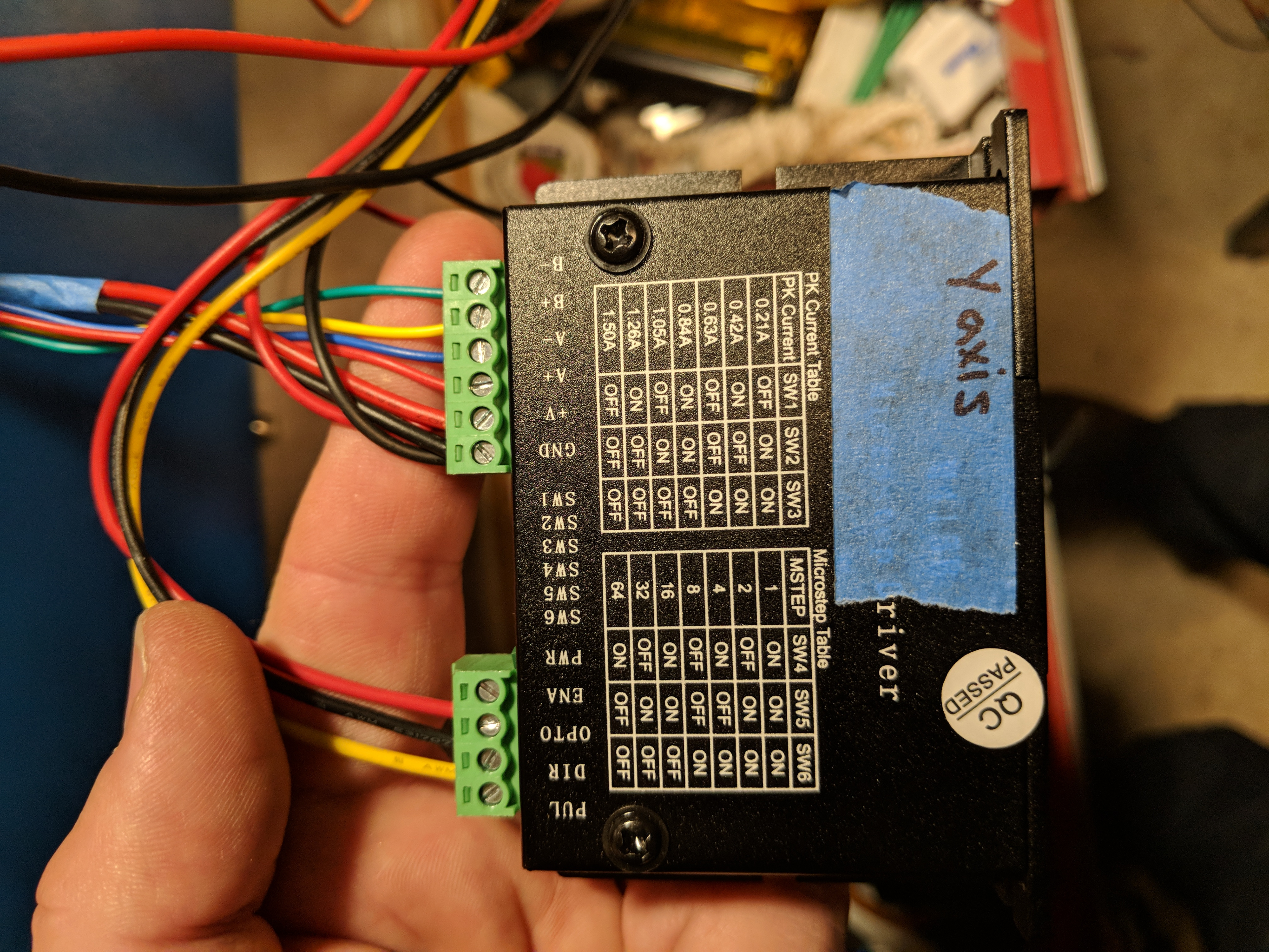 Just curious.. The photo with the dipswitch-settings on the driver.. was that before you set the motorcurrent? I think the selected peakcurrent of 0.21A is too low.. (i see off-on-on). You might set the current so that the motors become pretty hot (~50 degrees Celsius) after half an hour..
