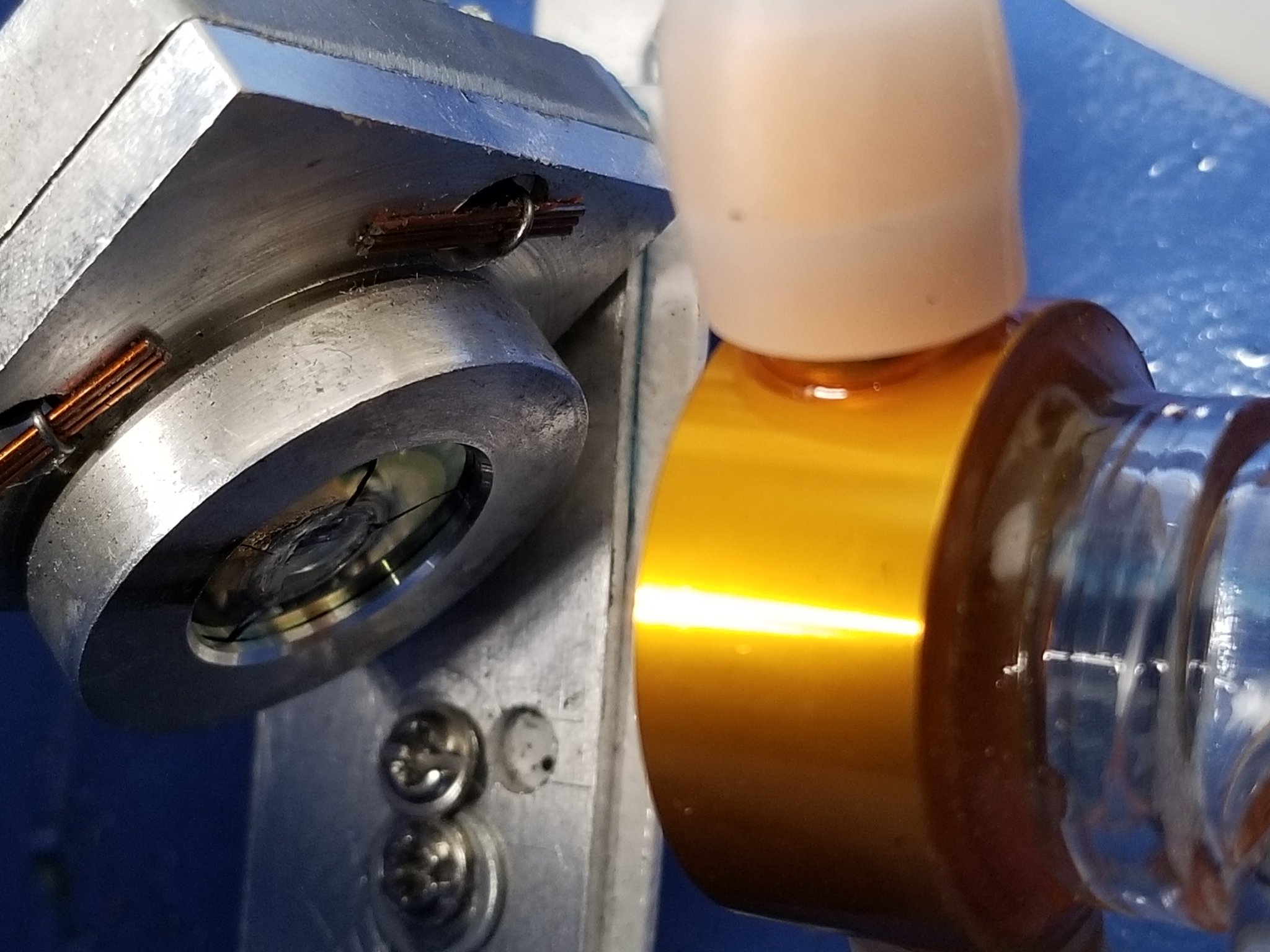 Yesterday, I installed the new water pump and aligned the mirrors. My first cut was 3mm acrylic and it cut through in one pass (but still not as powerful as when the tube was first installed a couple days before). When I attempted to make a second cut in the acrylic, I noticed the laser stopped cutting but the laser head was still moving. I then saw a BRIGHT light from the near the business end of the laser tube. It appears the laser was FRYING my 1st mirror closet to the laser output side.