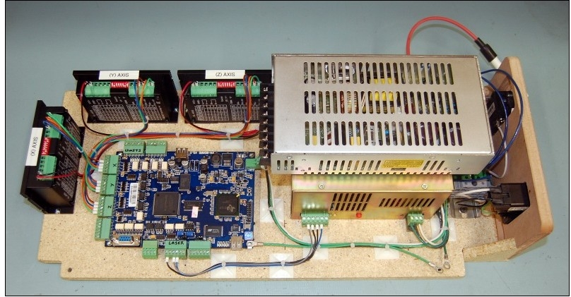 Thanks for the tip Rich, but I don't think the processor is running. I kinda wonder if it was programmed. I went ahead with the installation of the software and USB driver installation. I connected the USB cable and turned on the DSP and waited for at least 30 seconds for it to exit reset. When it didn't, I manually moved the X and Y axis to engage the limits switches. This should have brought the DSP out of reset but it didn't. Below are a couple pics of the DSP and LCD Panel.baccus61 wrote:Just a guess but I would say the USB port would have to be connected to a computer as well and be able to talk to the software.