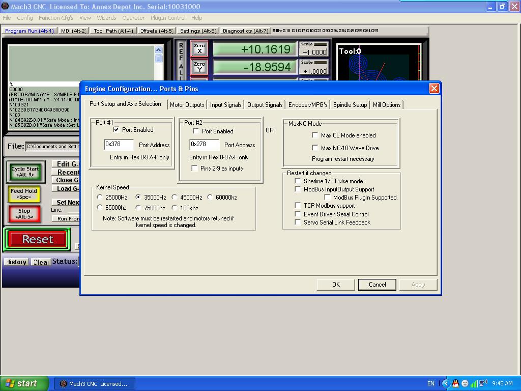 On Mach3, the most confusing part is the Enable Low or Enable High. It really mess things up easily. Again, do test and try to understand it. When I tried PWM controlling on Mach3, I spend 4~5 nights just by trying each 'check box' on Mach3.