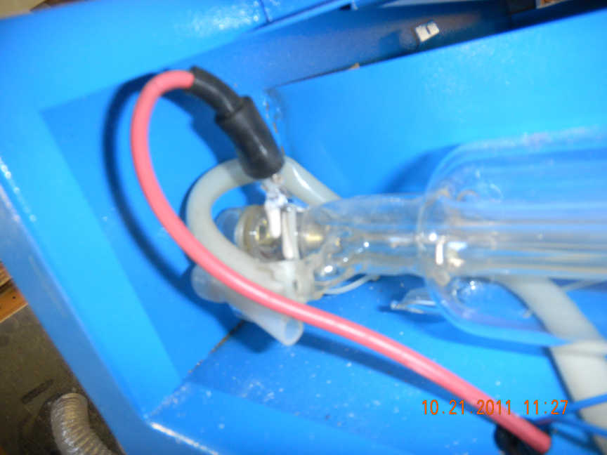 then I cut the HV wire connector away what did give me the right length to direct conect to the laser tupe.