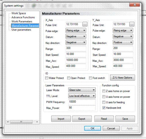 now I got a probleme with all the settings because I ahve setup everythings with the display but if I start now with the lasercut programm it does some strange things the home position is now lower right and the box size is totaly different then what I have set it I try to change the home position in the programm to lower left but it did not changewhat is your setting? is this ok ?