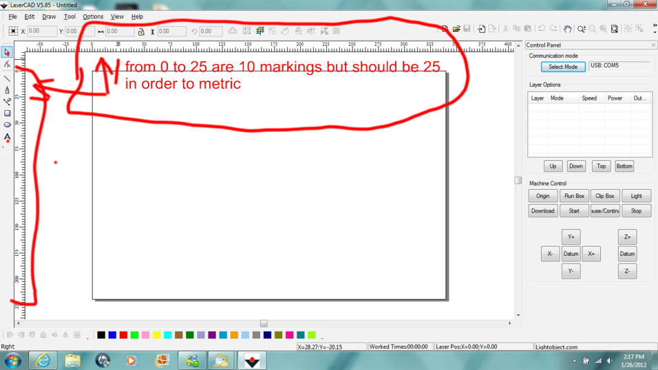 your screen shows it the right way in mm but mine wher I use the table size of 340X220mm it does not like you see on my screen shot